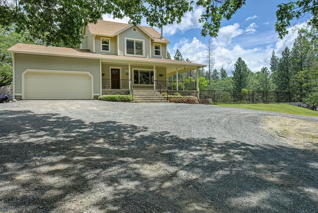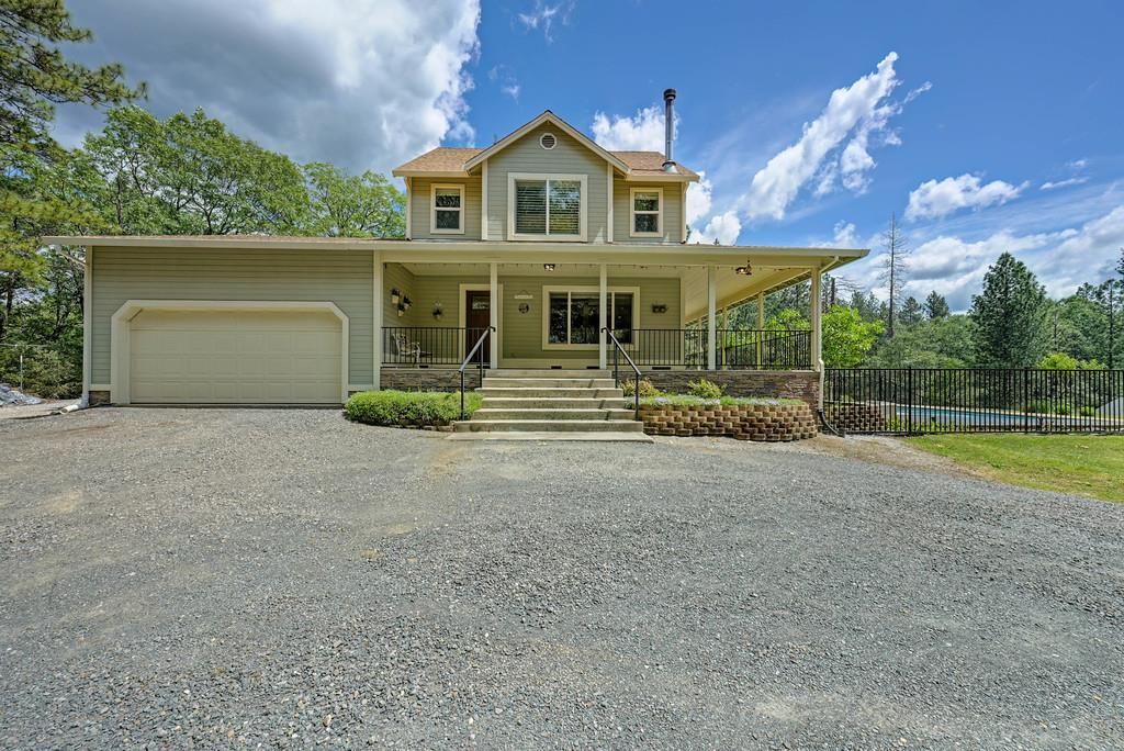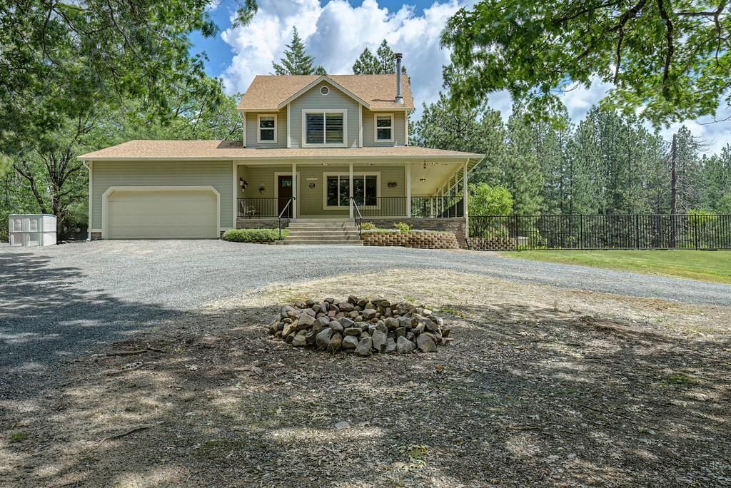 Discover the perfect blend of charm, comfort, and opportunity at 26750 Rockrose Lane. Set on 5.4 breathtaking, park like, nearly level acres, this special property offers privacy, usability, and future potential. The 1,422 sq. ft. farmhouse‑style home features 3 bedrooms and 2 bathrooms and is wrapped on three sides by a classic wraparound porch the ideal spot to relax and take in the serene surroundings. The meandering driveway leads gracefully to the house and shop, providing privacy from the road. Inside, the home is warm and inviting with an updated kitchen showcasing cherry cabinetry, granite countertops, stainless steel appliances, and a bar counter that opens to a bright, window‑filled living room. Thoughtful upgrades include engineered hardwood floors, a central vacuum system, a sophisticated water filtration and softener system, and custom window coverings throughout, including custom electric blinds on the French doors that lead directly to the expansive porch. Outside, the grounds are truly exceptional. The beautifully landscaped yard is meticulously planned for year‑round color, featuring lush green grass and mature plantings that bloom in every season. Enjoy endless outdoor fun with a fenced in‑ground swimming pool and wide-open space perfect for all of your recreational needs. Picture summer evenings on the porch while the kids play in the pool or ride ATVs across the property. A standout feature is the 2,400 sq. ft. custom shop (with a half bath) every enthusiast's dream. A robust 400‑amp electrical service powers both the home and the shop with 200 amps available for the shop, easily accommodating high‑demand uses such as multiple EV chargers, welding equipment, fabrication, car restoration, woodworking, hot tubs while future‑proofing the home for evolving energy needs. The property also offers RV hookups with power and water, making it perfect for visiting guests, extended stays, or recreational use. This property includes two parcels (2.4 acres and 3.0 acres), offering outstanding flexibility. The 3.0‑acre parcel (APN 099‑200‑022)is ready for development with a well, perc, power, and separate driveway already in place perfect for an ADU, a second home, or the option to sell separately for future profit. All the hard work has already been done. Lovingly cared for inside and out, this property is a rare Colfax offering where pride of ownership shines and possibilities abound.