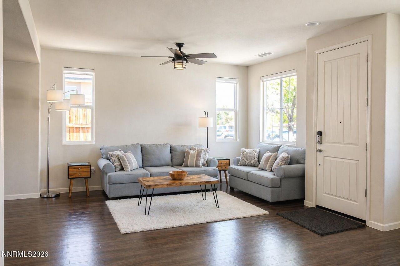 Spacious, Sun-Powered, and Move-In Ready! Built in 2016, this home features a expanded Great Room. Enjoy gleaming Bona-polished LVP floors, a chef's kitchen with a large granite island, and fully owned solar for huge energy savings. The master suite offers a custom accent wall, double-sink vanity, and deep walk-in closet. Smart-home equipped with Gen 4 Nest tech and low-maintenance landscaping. Includes refrigerator, washer, and dryer! Don't miss this turn-key Spanish Springs gem!